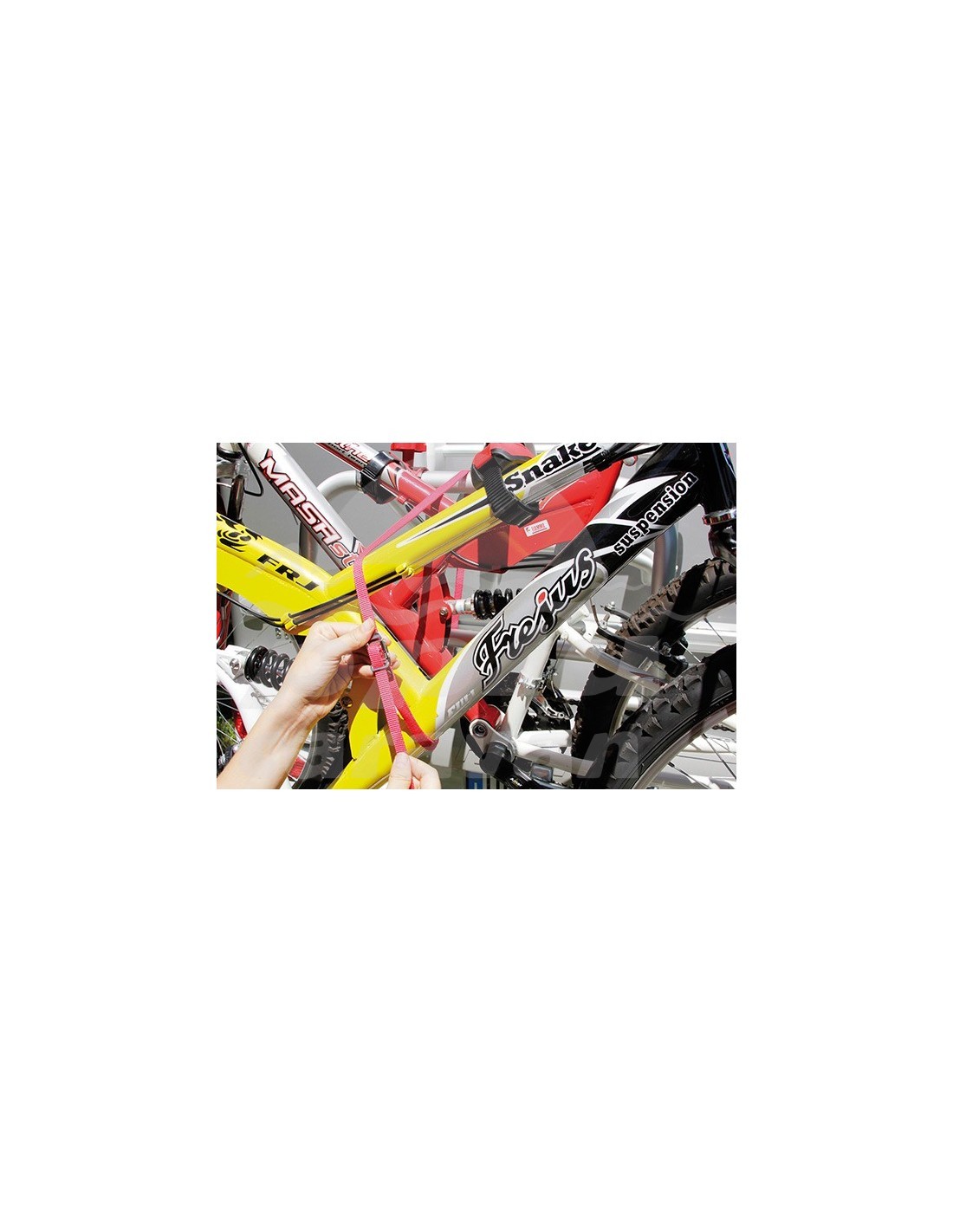 Cincha Strip suplementaria con hebilla de acero. Acoplable a todos los modelos de portabicicletas. Largo 200 cm. Ancho 1,3 cm.