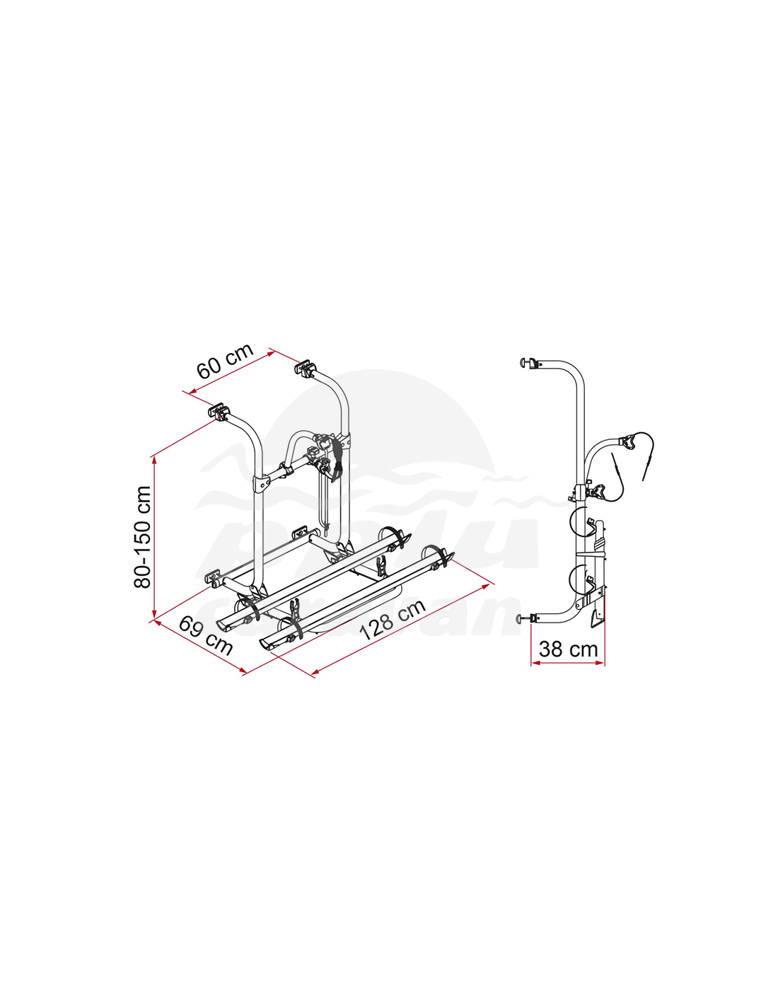 Es el portabicicletas telescópico, de hecho la versión alargada de la serie PRO permite una gran regulación de montaje para mayor estabilidad, la estructura es ajustable desde 80 hasta 150 cm para adaptarse a varias posibilidades de montaje. Los enganches superiores se pueden colocar a diferentes alturas.