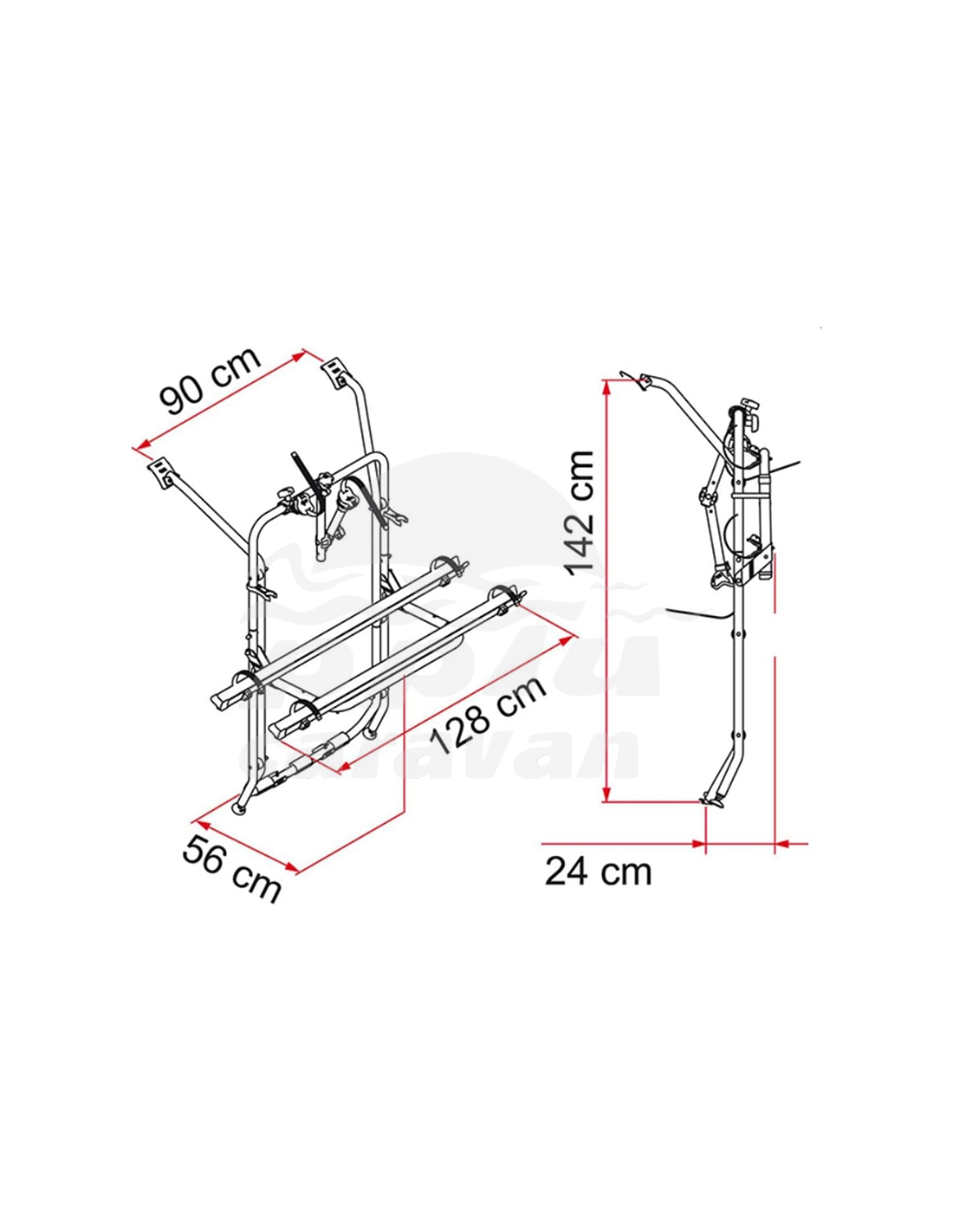 Bicis que se pueden transportar de serie: 2 Bicis máximo transportable con opciones: 4 Carga max: 60kg. Posibilidad de Ebike: No