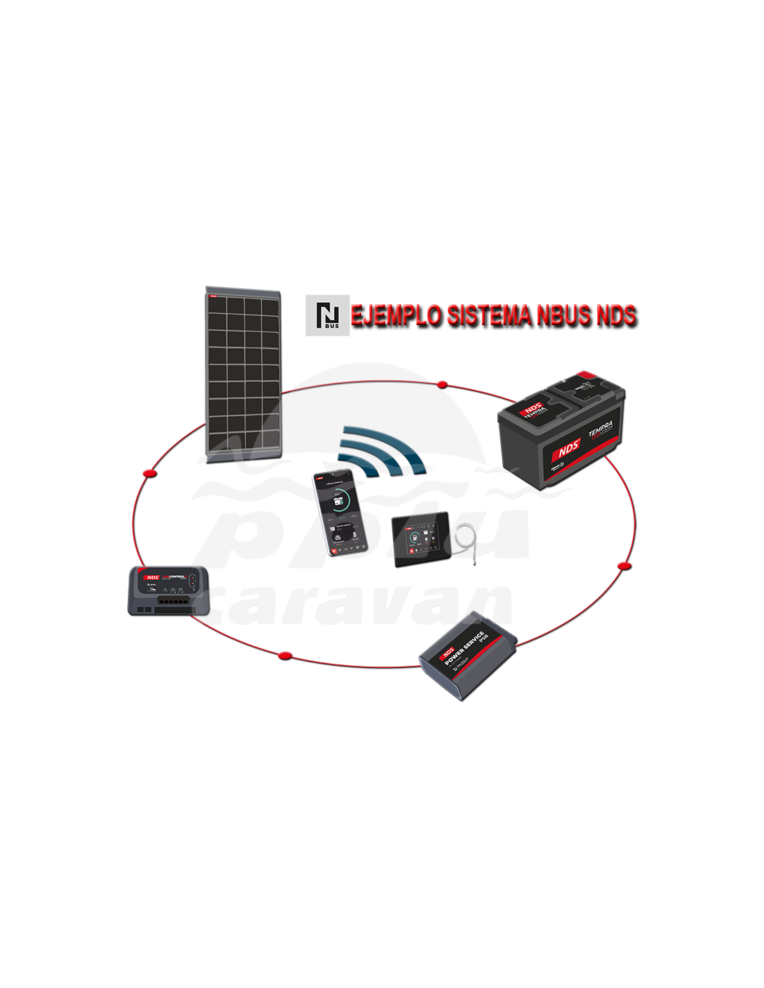 Los dispositivos con protocolo de comunicación N-BUS, como el POWERSERVICE PSB, pueden ser controlados por una única pantalla Bus (opcional) y aplicación móvil NDS (si hay un dispositivo NDS Bluetooth en la red).