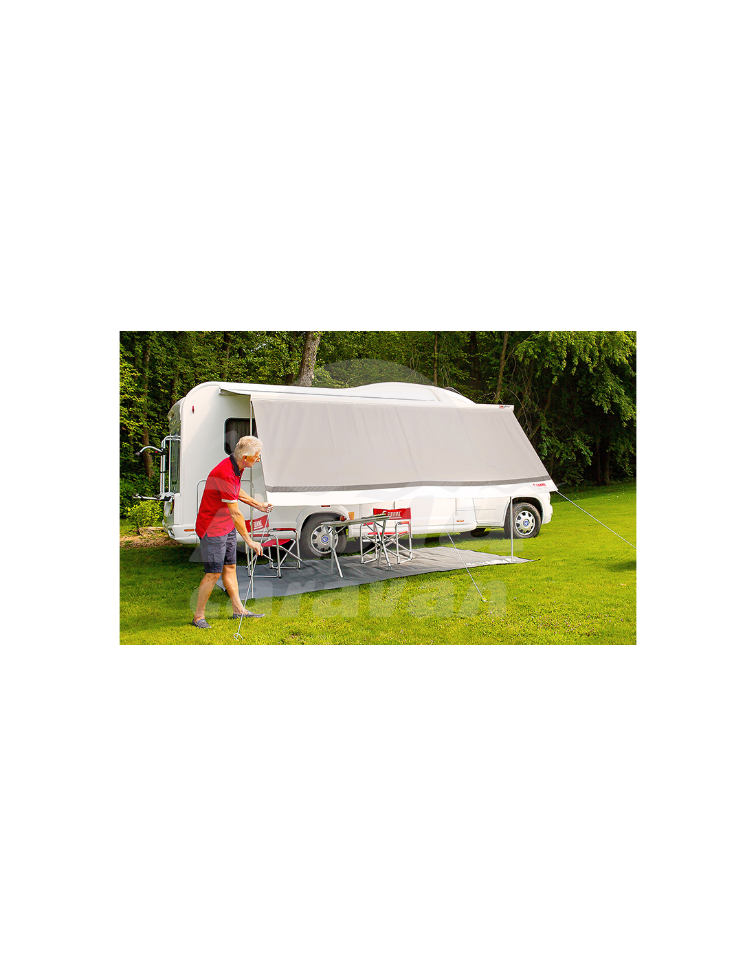 Práctico panel frontal: válida detención contra el sol y la lluvia y para proporcionar más intimidad.