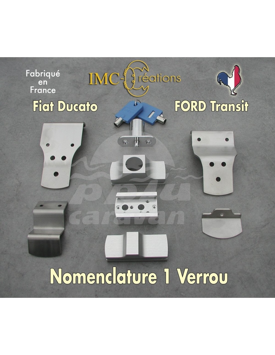 Cierre seguridad interior con llave para Ford Transit a partir 2014 + 2 cierres para puertas lateral y traseras de furgón 1834B en negro.