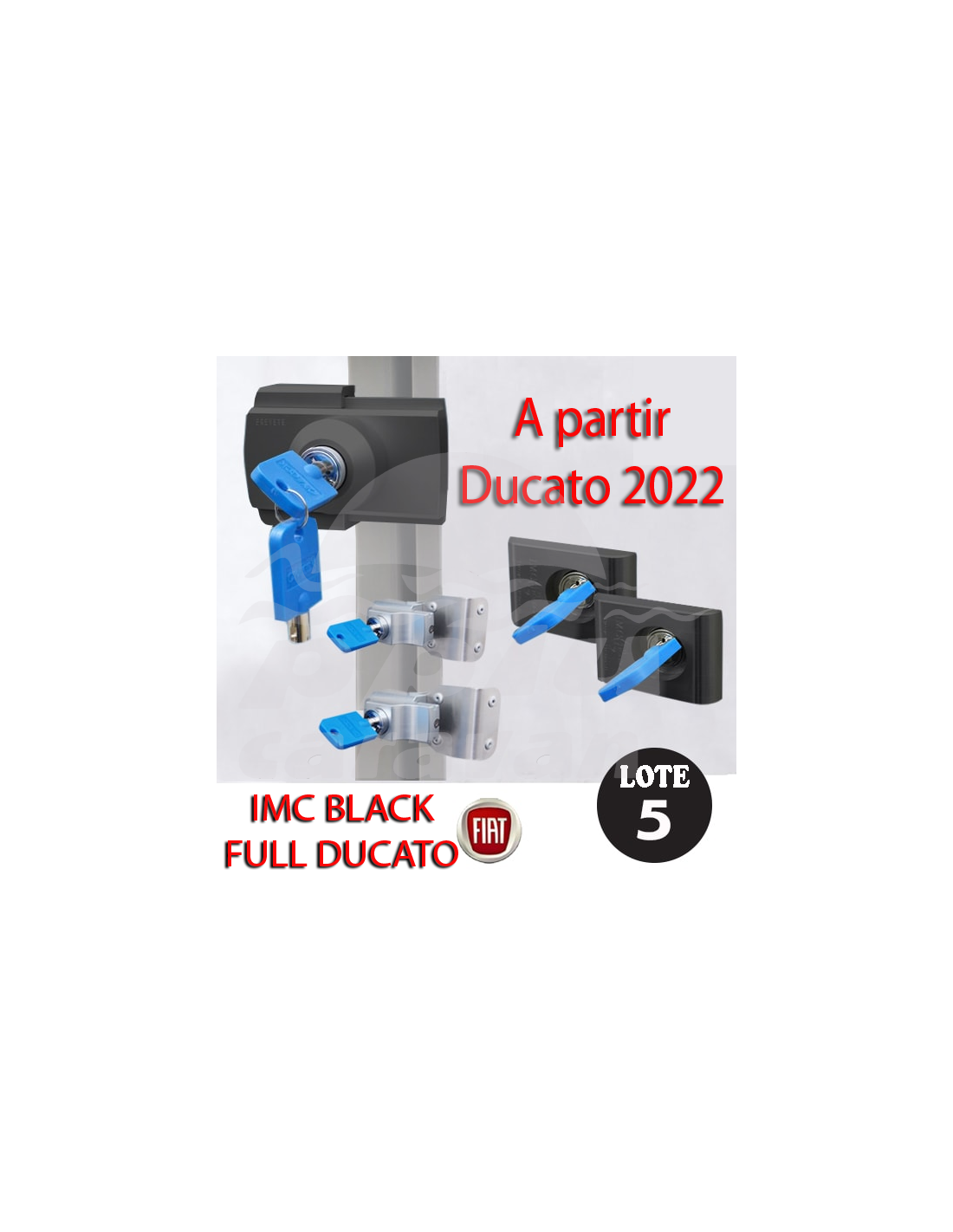 KIT DE CIERRES IMC CABINA PARA DUCATO A PARTIR 2022 (X250/X290) + CIERRE PUERTA VIVIENDA IMC 1507B CON APERTURA INTERIOR + 2 CIERRES 2210B PUERTAS DE GARAJES.