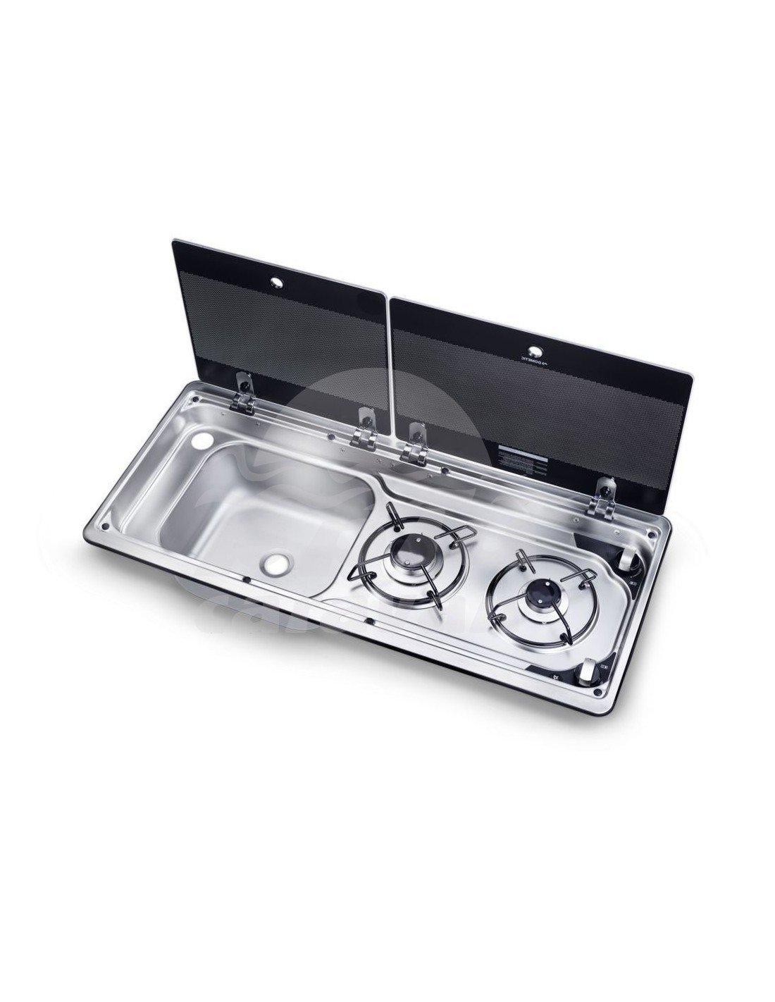 Cocina y fregadero de dos quemadores con tapa de vidrio
