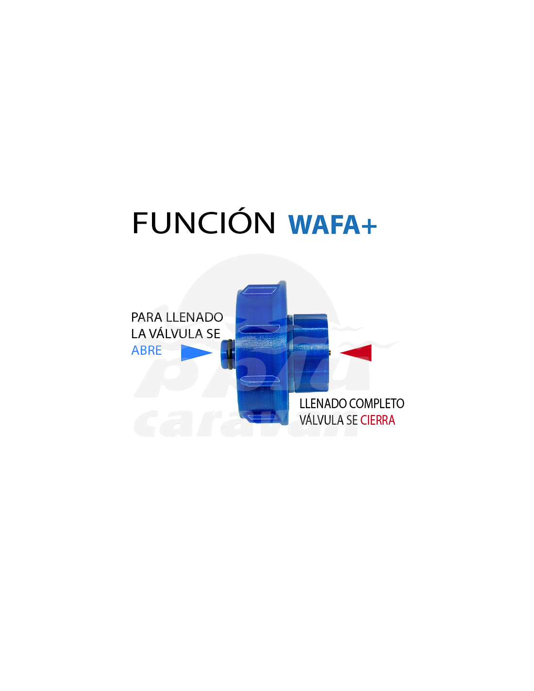 WAFA +-El adaptador de llenado no se apaga automáticamente cuando el tanque de agua está lleno. No realice el proceso de llenado sin supervisión. Cierre el agua a más tardar cuando la ventilación del tanque se desborde. Cierre bien la tapa de inspección del depósito de agua (rojo) antes de llenarlo. El adaptador de llenado WAFA + solo debe usarse para agua potable.