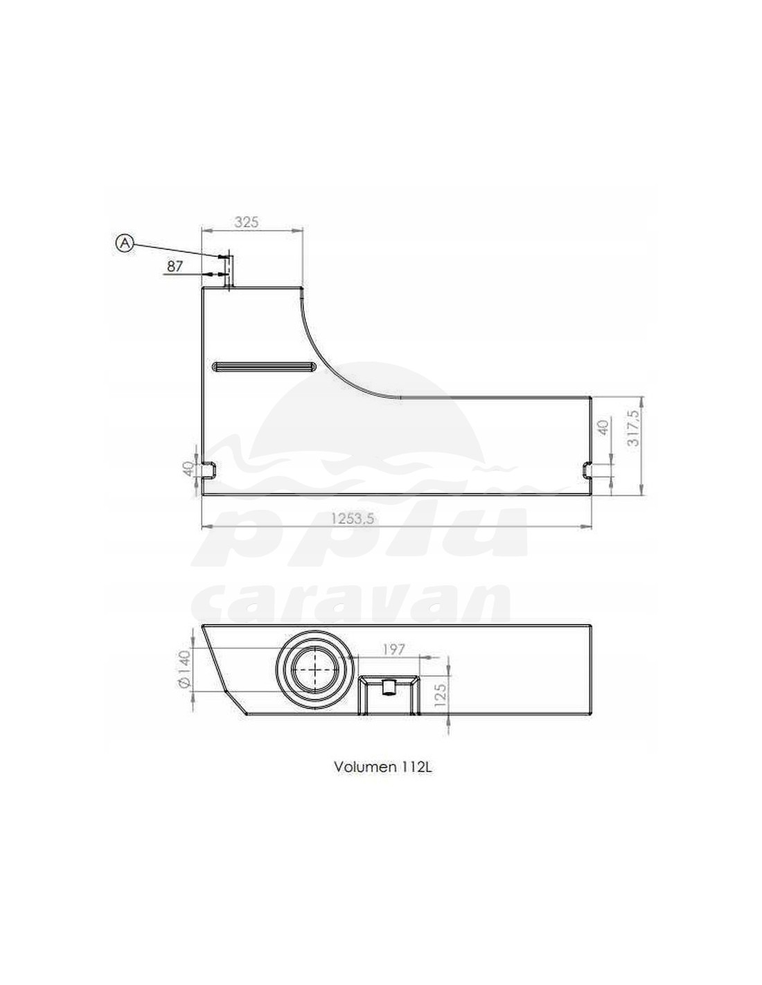 Depósito de agua 112 litros (paso de rueda).
