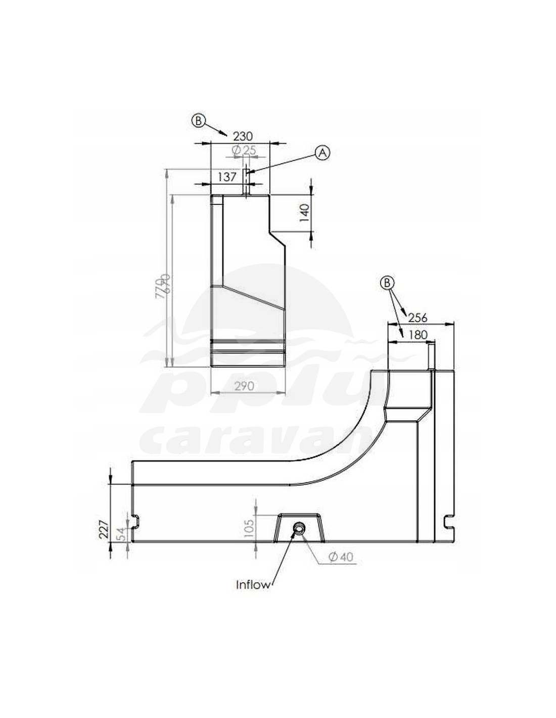 Depósito para aguas limpias con entrada de 40mm.