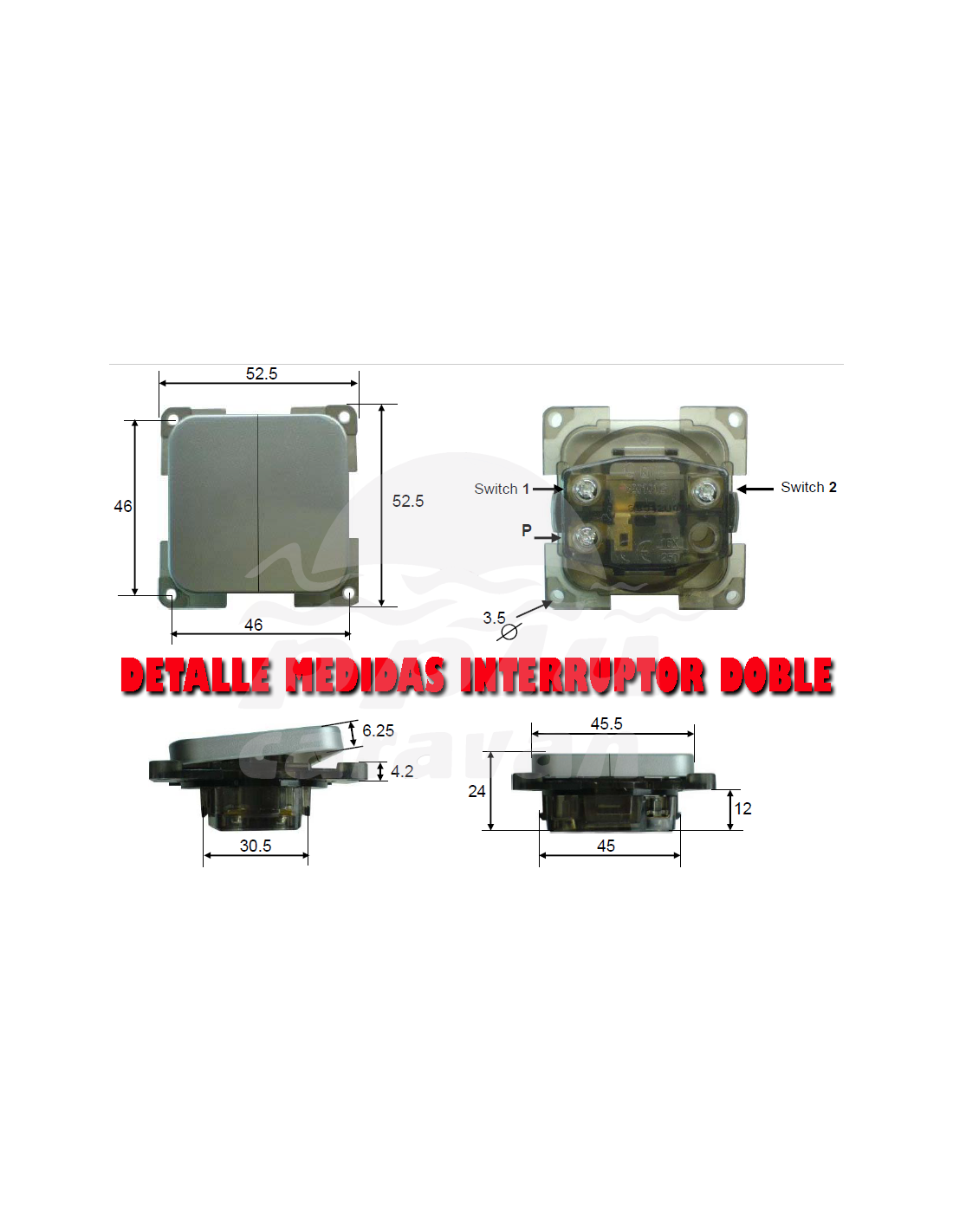 ES+PLUS INTERRUPTOR DOBLE TECLA NEGRO.