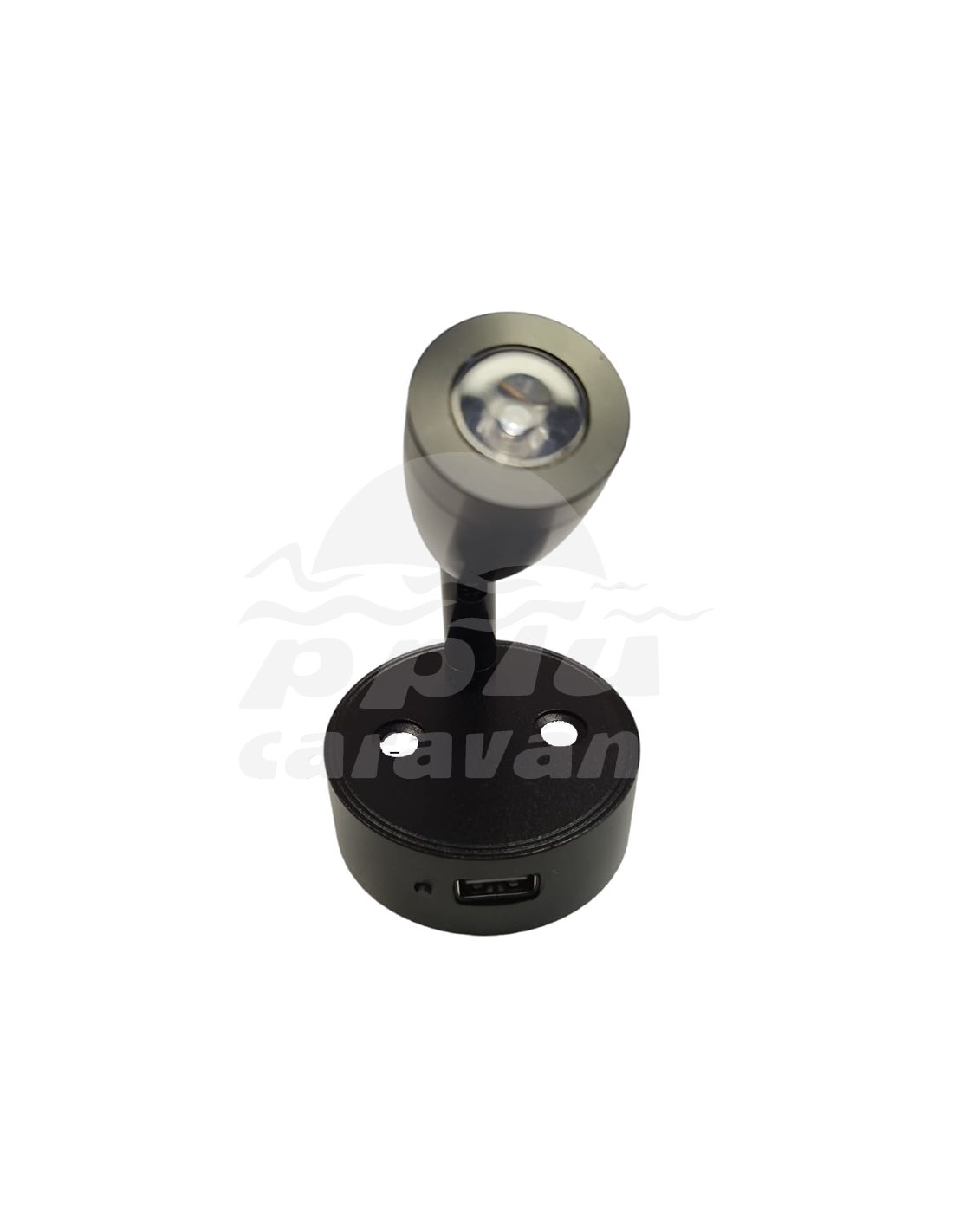 DATOS TÉCNICOS: Luz cálida 3000K 270Lumen Voltaje: 10-30DC (12-24V válido) Potencia: 3W Medidas: largo 60 tulipa recogida, 100mm tulipa extendida totalmente. base: 60Øx20mm tulipa: 50mmx30mm Touch control USB: 5V - 2A Color: negro Material: Metal