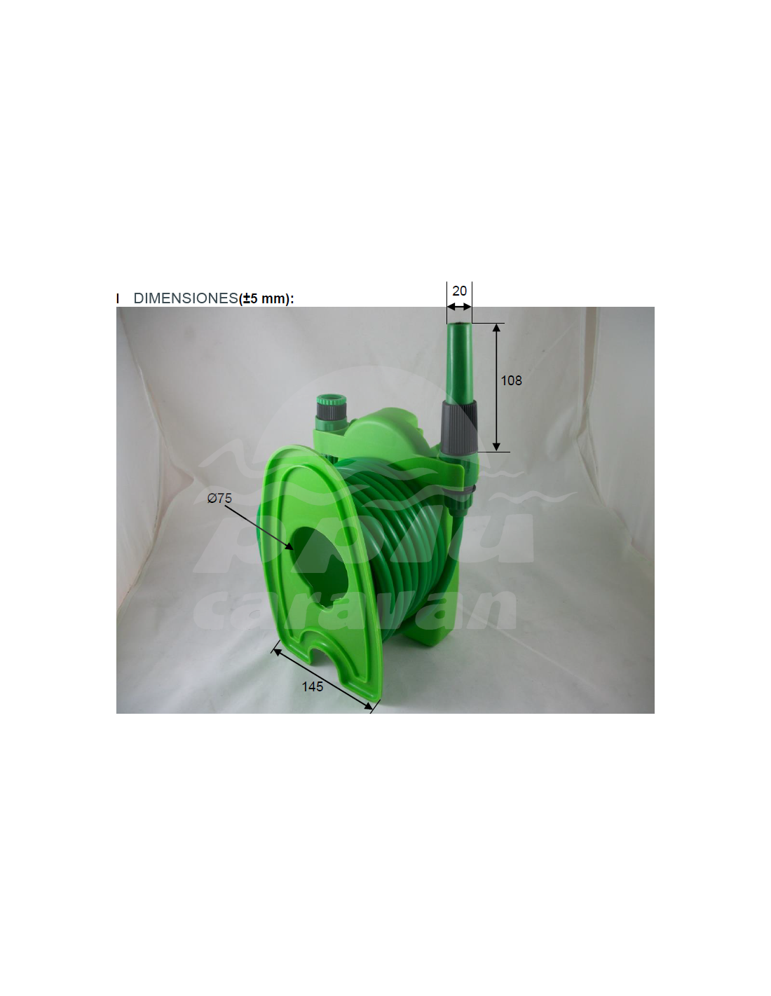 Se puede fijar a la pared o costado con empuñadura. 10 m, diámetro de la manguera 11 mm