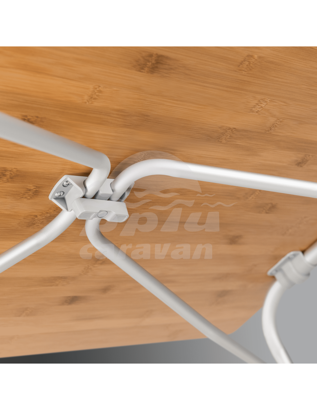 Mesa con patas ajustables de tamaño grande. Con una estructura ligera de aluminio y una encimera de bambú sólida e impermeable. Encimera: Bambú Marco: Aluminio Tamaño de la mesa (An x Fo x Al): 1000 x 700 x 540-715 mm Tamaño de encimera (An x Fo): 1000 x 700 mm