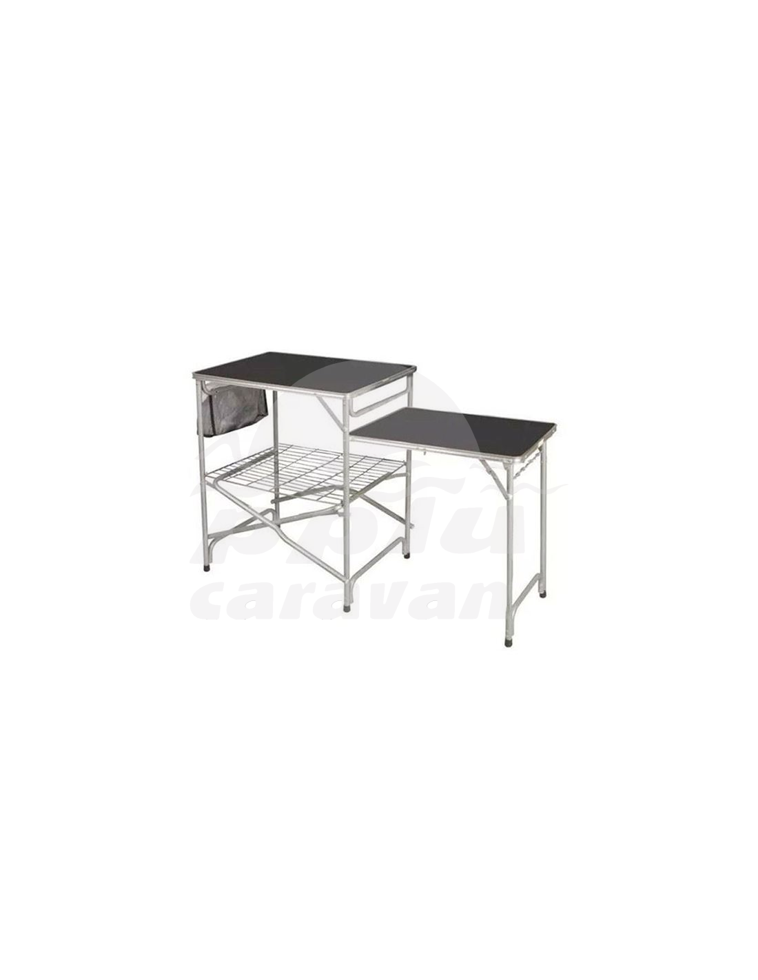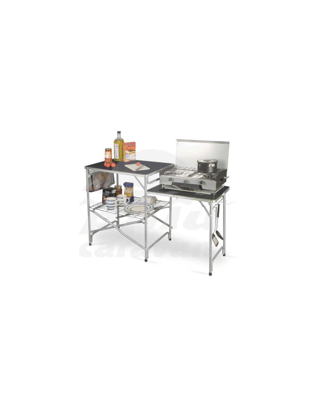 La cocina Kampa Colonel ofrece mucho espacio de almacenamiento y una gran área de trabajo para optimizar su experiencia de camping. El mueble incluye una gran despensa colgante y un bote de basura. Se desarma y se pliega rápidamente, en una bolsa, para un transporte y almacenamiento ideales.
