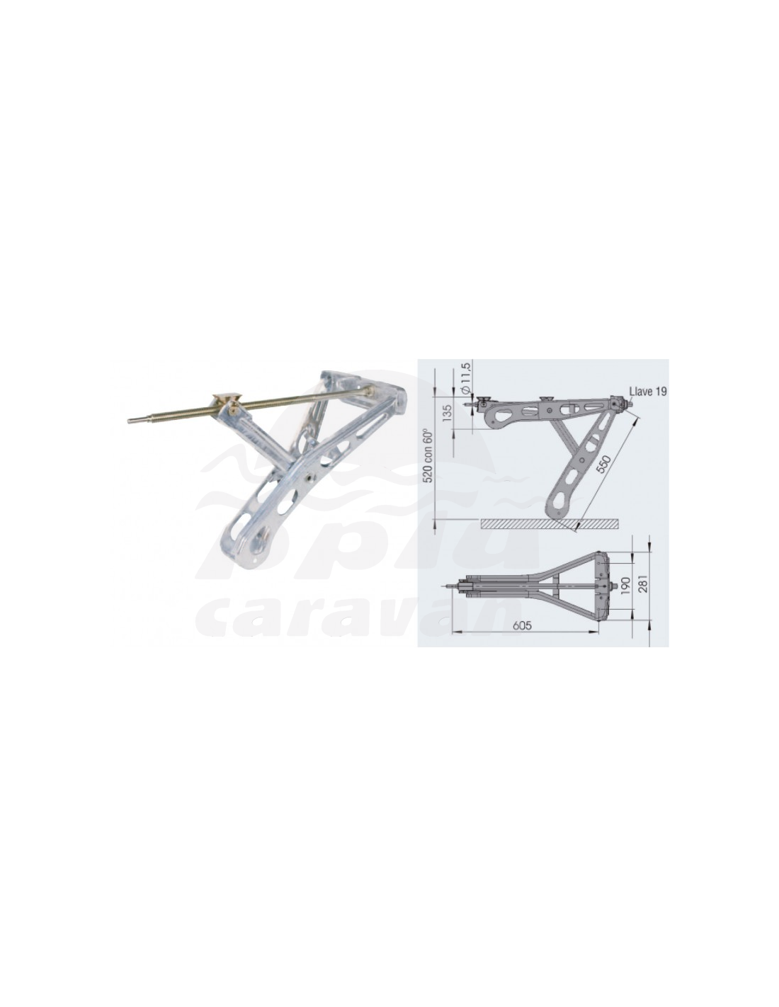 La pata se saca y se recoge simplemente haciendo girar el husillo con una manivela (sin tener que bloquarla antes o después).