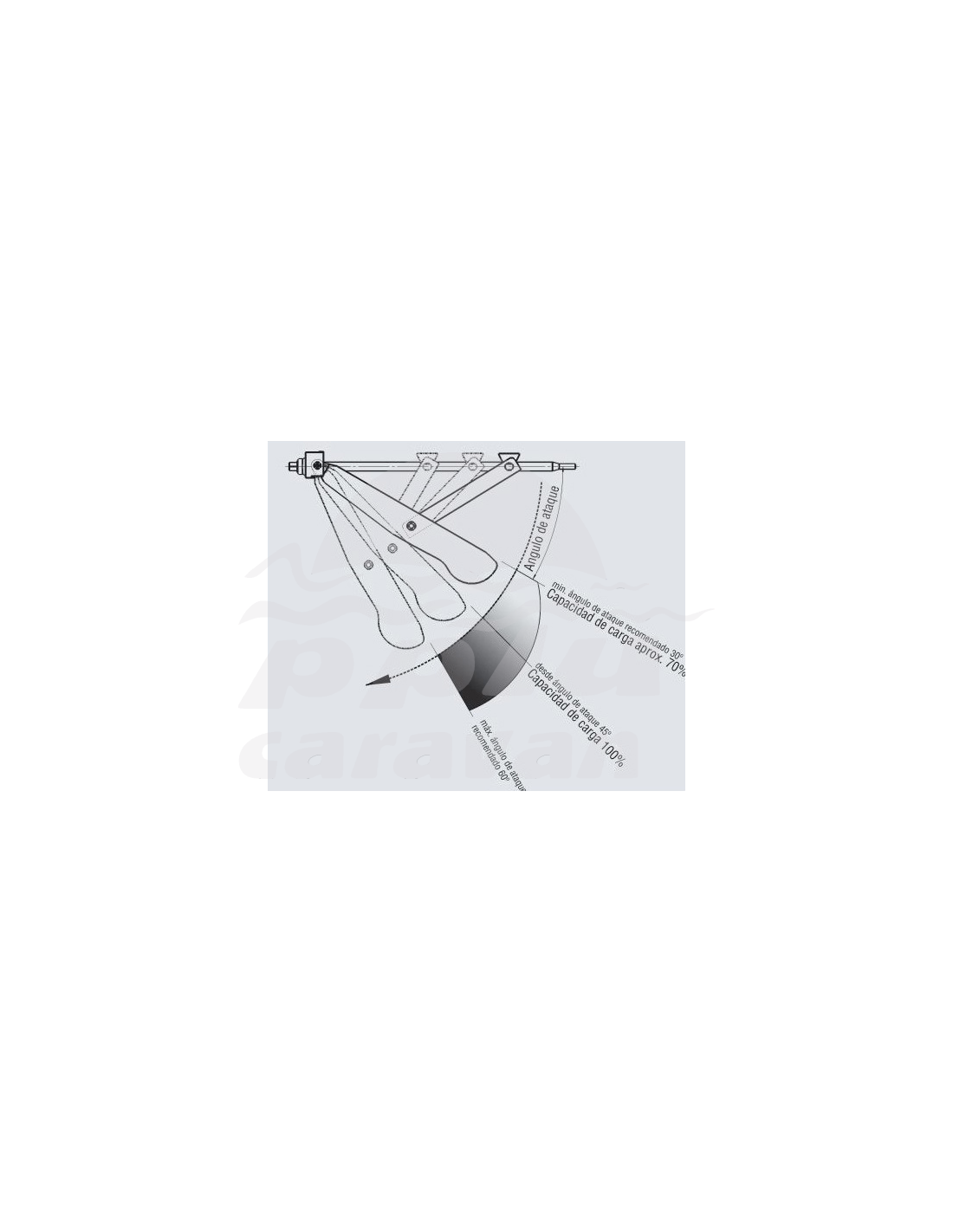 El ángulo de extensión 45º proporciona la máxima capacidad de carga de la pata. Ésta disminuye con un ángulo menor (p.ej. 30º).