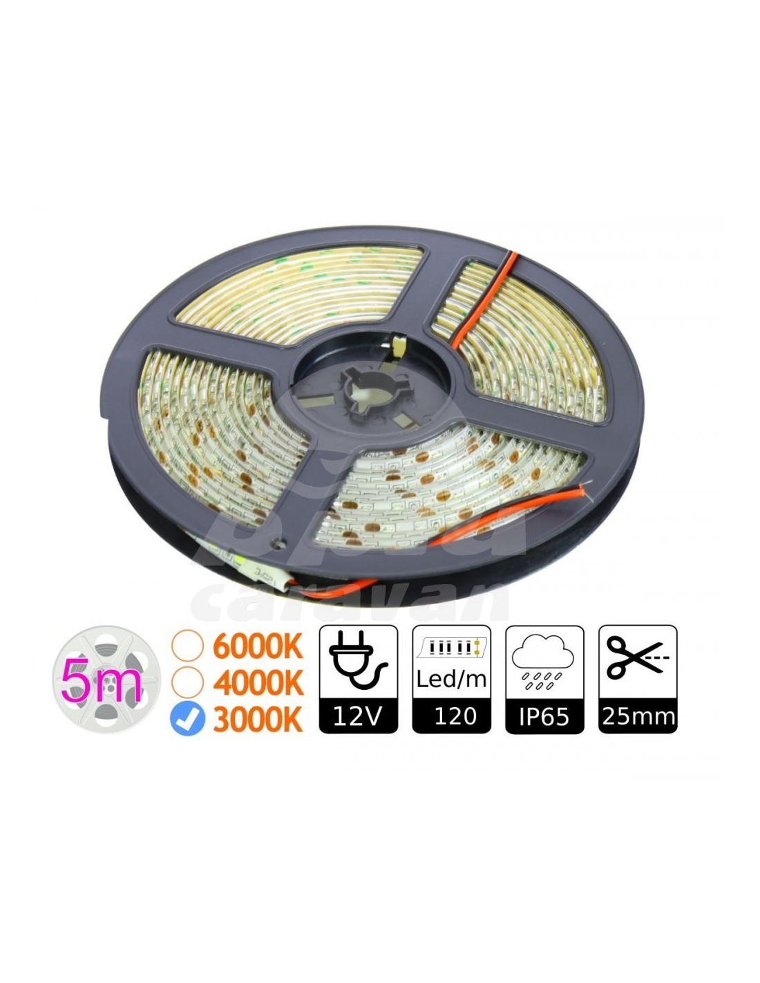 La tira de led flexible se puede cortar cada 3 LEDs cada 25mm para adaptarse perfectamente a sus necesidades de longitud.
