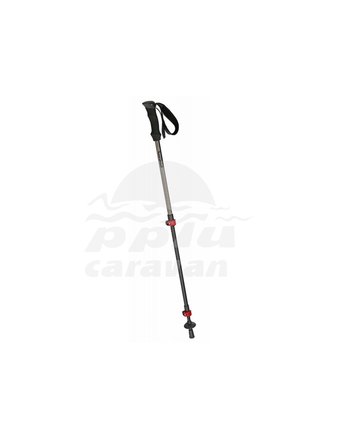 Se trata de un bastón de tres tramos muy resistente fabricado en aluminio ligero. Dispone de sistema de ajuste facil QuickLock (por palanca de presión). Dragonera regulable y con revestimiento de micro-fibra para más comodidad. Punta de tungsteno y tacos de goma incluidos. Roseta de medida pequeña (5 cm) incluida.