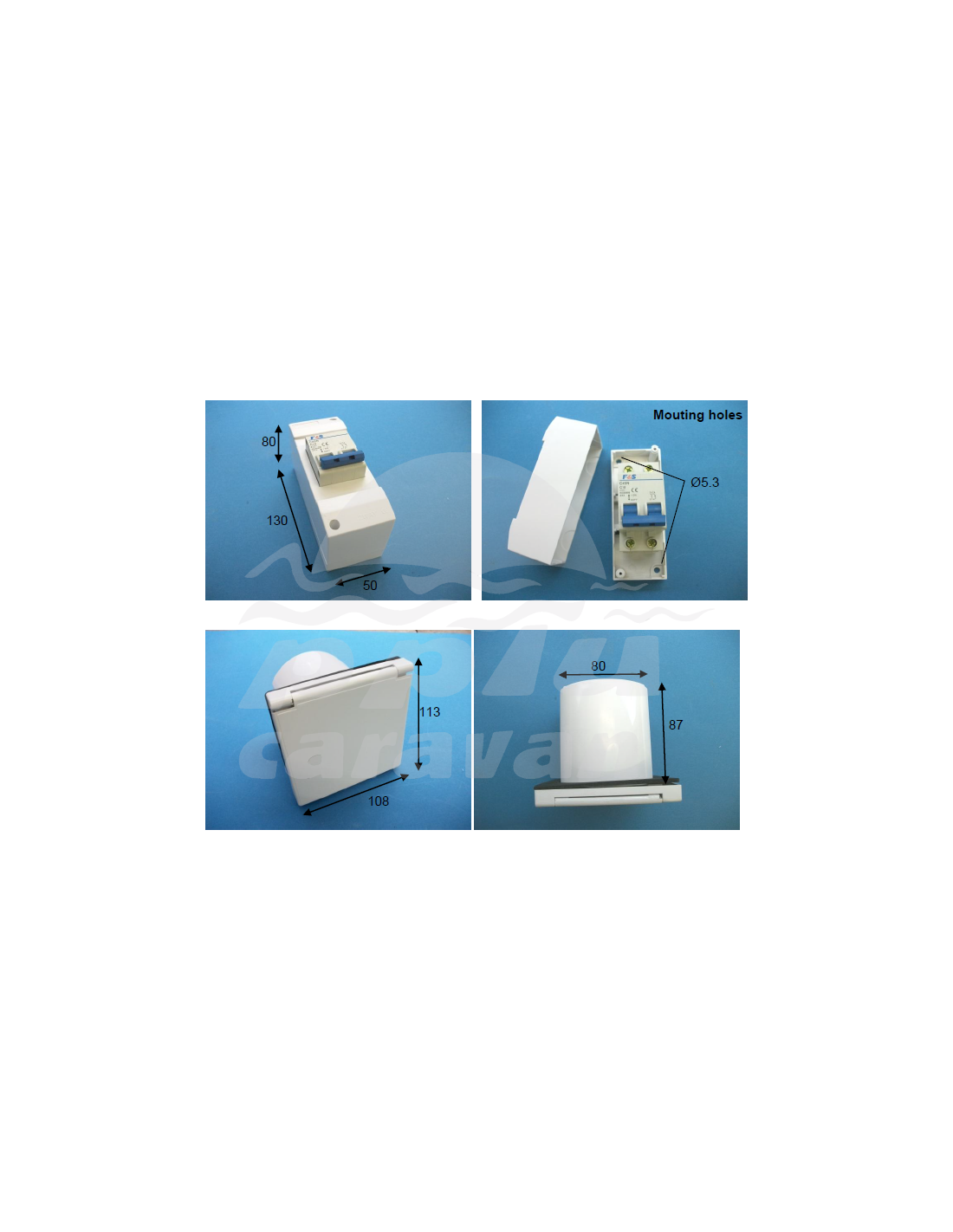 Caja de dimensiones exteriores con fusible automático: 130x50x80mm