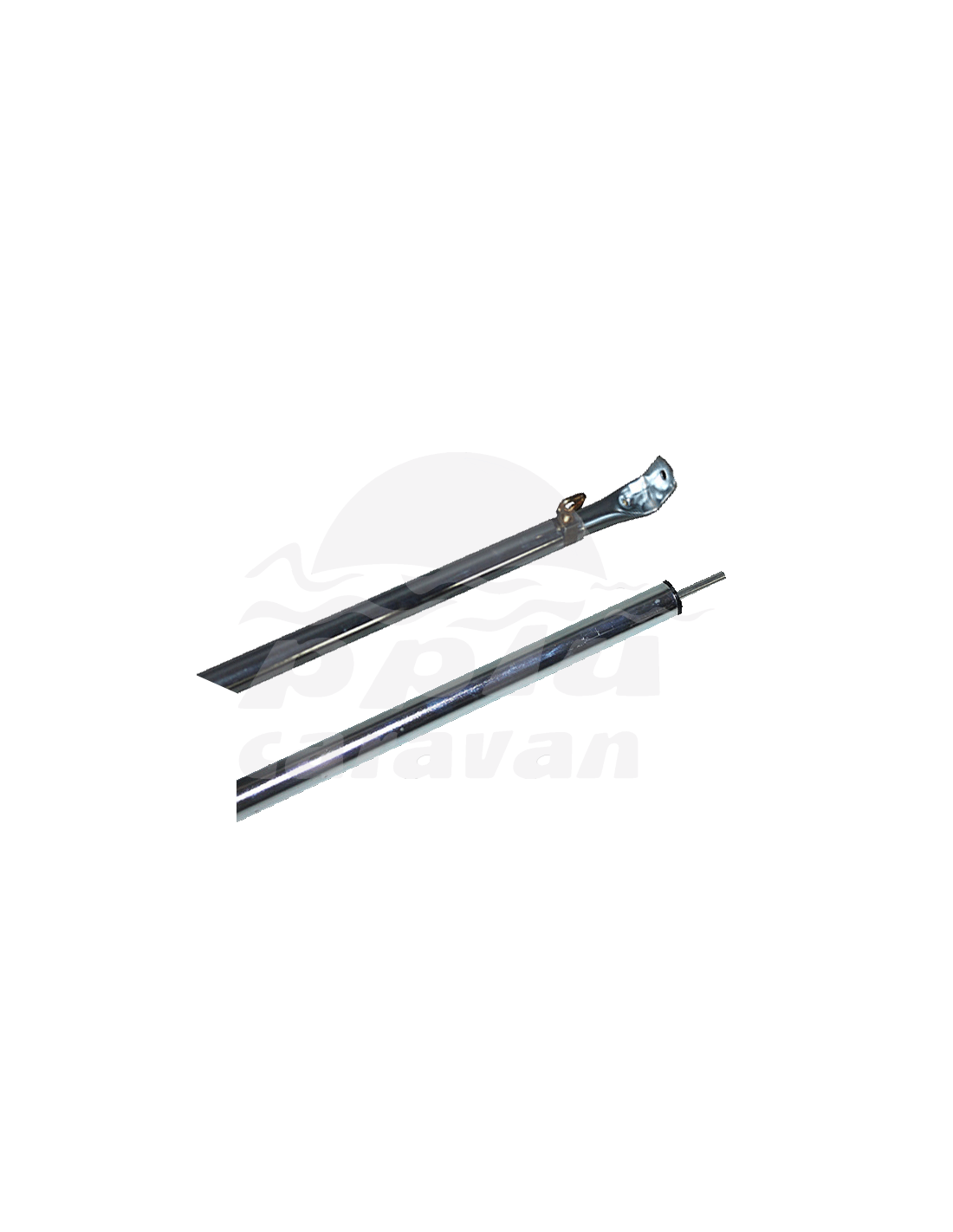 Un lado con gancho para sujetar sobre pared de caravana y el otro abrazadera con palomilla