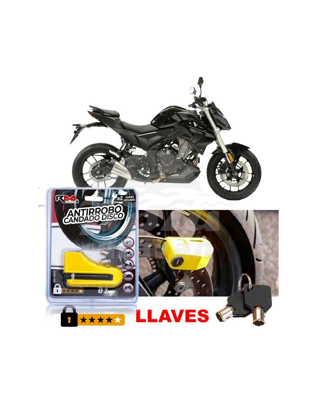 Antirrobo candado disco de freno de 7mm, incluye 2 llaves tubulares