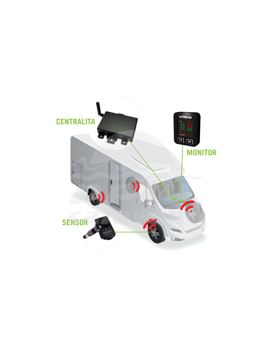 VITRAN se compone de sensores ubicados en cada neumático que envían una señal a una centralita receptora. Las mediciones se reflejan en un monitor ubicado en el salpicadero del vehículo que indica al conductor la presión y temperatura de los neumáticos mediante números y colores. Una alarma alerta sobre cualquier disminución o aumento anormal de la presión.
